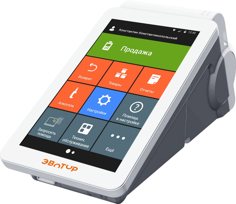 Смарт-терминал Эвотор устанавливается пользователем самостоятельно «из коробки» вне зависимости от квалификации персонала. Позволяет самостоятельно осуществить автоматизацию товарного учета, подключить сканер и периферийное оборудование .